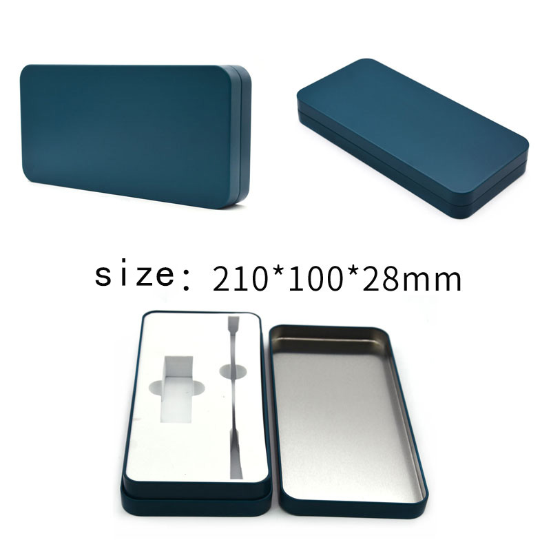 The Rectangular Watch Organizer Tin Box is a classic shape and versatile enough for almost any watch or business. This rectangular jar is equipped with sponge material accessories, which can better protect the watch. Box size: 210x100x28mm, material thickness 0.23mm. Made in China, made of tin-plated iron material.
